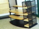 Zařízení prodejny NoFear, materiál limba, tahokov konstrukce.